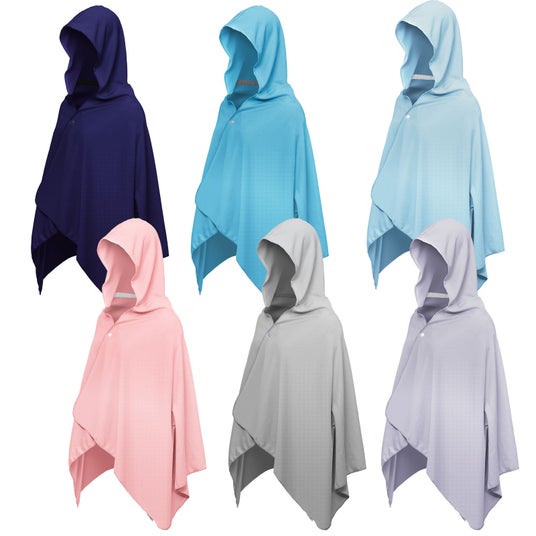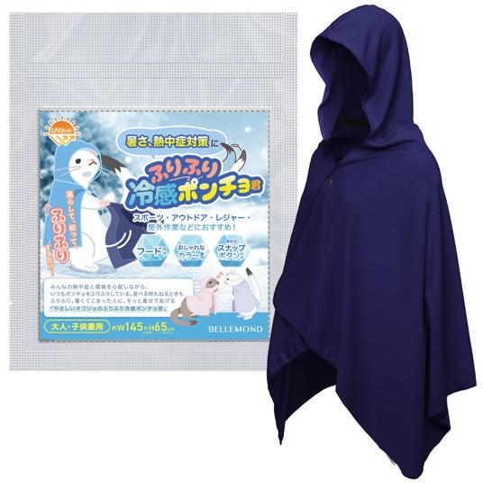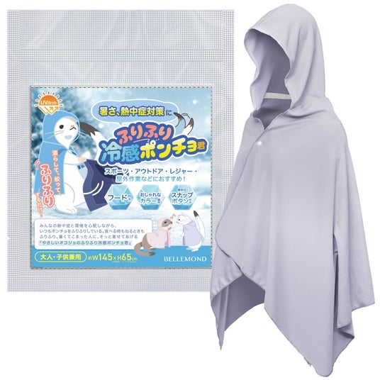 肩や腕をカバーし、広範囲をやわらかく冷やすポンチョタイプ。