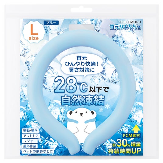 首元を冷やす軽量リング。繰り返し使えて経済的。シンプルなデザインでロゴなしや小さめタグが男女問わず人気です。大きめLサイズは、男性に好評です。