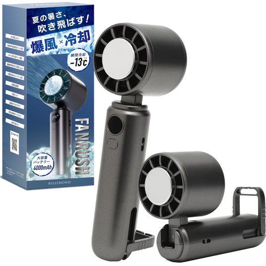 静音設計で屋内外で快適に使えるコンパクトファン。定番のハンディファンの形に、こだわりの「でっぱり冷却プレート」が付いて肌に当てやすい最新タイプ。