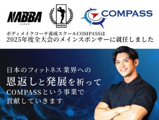 NABBA JAPANが掲げる「ボディビル、フィットネス競技種目の専門性を高めて大衆化に先頭に立つ」というスローガンと、COMPASSが掲げる「ボディメイクを通して人生の転換点をつくる」という理念が同じ方向を目指していることから、COMPASSはNABBA JAPANのメインスポンサーに参画しました。