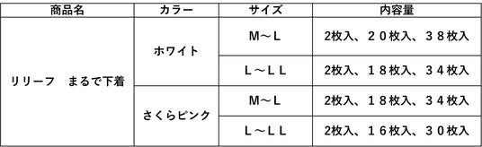左から、「リリーフ まるで下着」 ホワイト M~L 20枚入 / さくらピンク M~L 18枚入