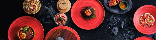圧巻のパノラマビューを眼下に望むライブキッチン空間で、炎や香り、音までもがコースの一部となる「体験する食事」がここにあります。
