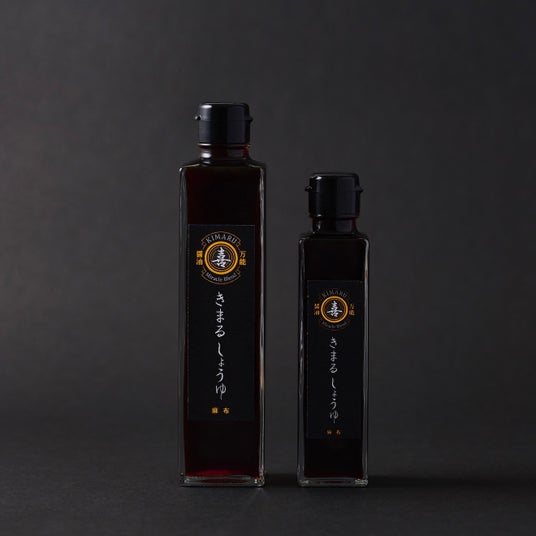 【お試しにも、贈り物にも】きまるしょうゆは2サイズ展開。小瓶でお試し、大瓶で毎日の定番に。「もっと早く大きい方にすればよかった!」の声、多数です。