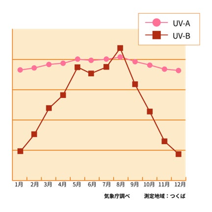 紫外線対策は夏にケアするイメージがありますが、それは主にUVBに限った話です。一方、UVAは年間を通して高いレベルで降り注いでいるのが特徴です。図の通り、肌の奥にまで届くUVAは季節を問わず存在します。日々の紫外線の積み重ねによって進行する光老化ダメージを防ぐには365日の紫外線対策が必要です。