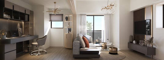 住戸は2LDKを中心に3タイプを揃えており、地上12階建・全33邸、全邸角住戸というプライバシー性に優れた設計で、ホテルライクな内廊下、最大天井高約2.7mの伸びやかな空間構成を実現しています。さらに、環境配慮型マンション「ZEH-M Oriented」に対応し、高い断熱性能と省エネ性を兼ね備えた住まいとなっています。