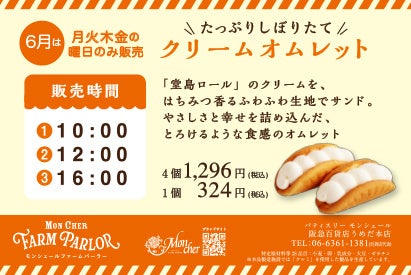 株式会社Mon cher(代表取締役社長:金美花 本店:大阪市北区堂島浜)は、パティスリーモンシェール阪急うめだ本店にて店内キッチン「モンシェールファームパーラー」をオープン。パティシエがその場でクリームを泡立てて、生地に絞り、アカシアのはちみつが上品にかおるスポンジでたっぷりのクリームを包んだ「クリームオムレット」を数量限定で販売致します。まるで搾りたての生乳を食べているかのようなフレッシュなクリームの美味しさをご堪能くださいませ。