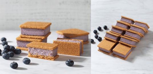 『チーズケーキサンド・ブルーベリー』は、クセが少なく食べやすいオーストラリア産クリームチーズをベースに、爽やかな味わいのブルーベリーを合わせました。じっくり焼き上げたブルーベリーベイクドチーズケーキはなめらかな口当たりに。香ばしく焼き上げたアーモンドサブレでサンドし、ブルーベリーのすっきりとした甘味と、チーズのコクを感じていただける商品に仕上げました。今の季節に召し上がっていただきたい、爽やかな味わいの季節限定商品です。
