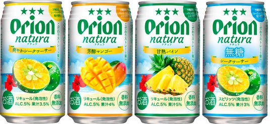 リニューアル後の通年品ラインナップは、「オリオン natura爽やかシークヮ―サー」 「オリオン natura芳醇マンゴー」「オリオン natura甘熟パイン」「オリオン natura無糖シークヮ―サー」の全4種類を展開。すべてのフレーバーに「沖縄県産素材」を採用し、沖縄県産フルーツの魅力をさらに引き出しました。