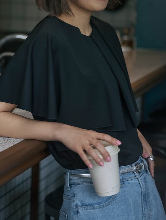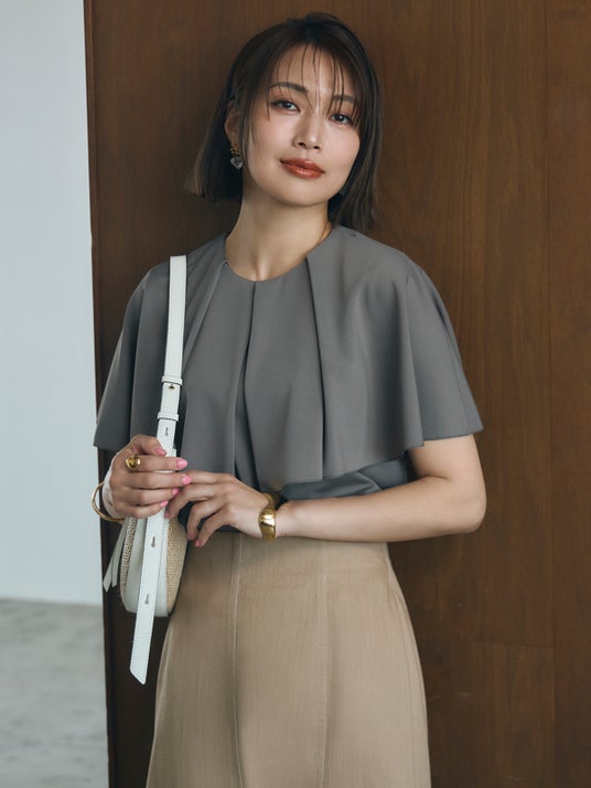 ・【Blouse】接触冷感&シワになりにくいジャージー素材を採用、美しく波打つケープがモダンなエレガンスを表現