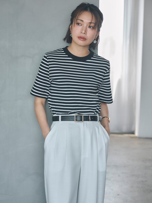 ・【T-shirt】襟の太めのリブと適度なゆとりの絶妙なサイズ感がポイント