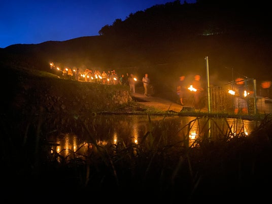 本ツアーでは、実際に火手を持って、地元の方と一緒に虫送りに参加することができます。
