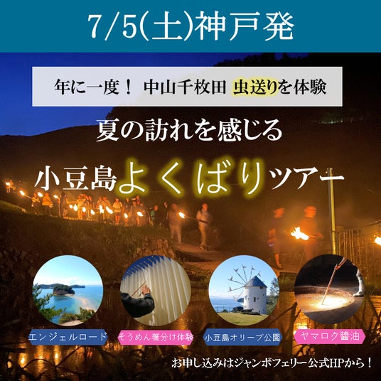 ジャンボフェリー株式会社(本社:神戸市 代表:山神正義)は、神戸発・小豆島ゆきフェリーを利用した、小豆島日帰りツアー(7/5出発)の募集を行います。