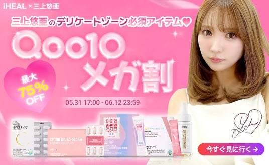 Qoo10の健康食品カテゴリーランキングで1位を記録したアイヒールが今回の6月メガ割で大人気タレントの三上悠亜とコラボを実施すると明かした。