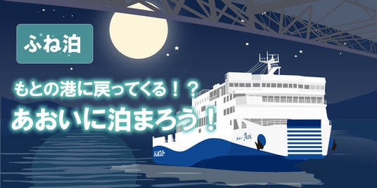 夜に神戸港を出港して、高松に到着後も下船せずに折り返し、早朝に神戸港へ戻ってこられるサービスです。フェリーをリーズナブルな宿泊施設のように使うことができ、船上で神戸に一泊したかのような体験ができます。