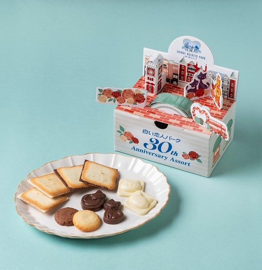 【白い恋人パーク 30周年アニバーサリーアソート】1,500円(税込)白い恋人パーク30周年を記念したお菓子のアソートです。箱を組み立てると小さな白い恋人パークが出来上がります。