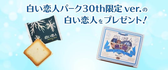 【概要】有料エリアに入館したお客様のうち、30日生まれもしくは、1995年生まれの方に入館特典として白い恋人2枚入小箱(白い恋人パーク30周年限定デザイン)をプレゼント!