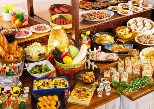 ライブキッチンでは、“幻のモサエビ”の網焼きと、希少な“蒜山ジャージー牛”のステーキを焼きたてで提供。地元ならでは贅沢な味覚を心ゆくまでご堪能ください。