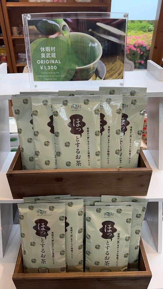 旅先においてホテルは落ち着く場所、ホッと安心できる場所でありたいという思いから「苦味、甘味、渋み」にこだわったオリジナルの味わいを茶師がブレンド。チェックイン時にご提供するとともに休暇村奥武蔵のオリジナル商品として売店にて販売しています。