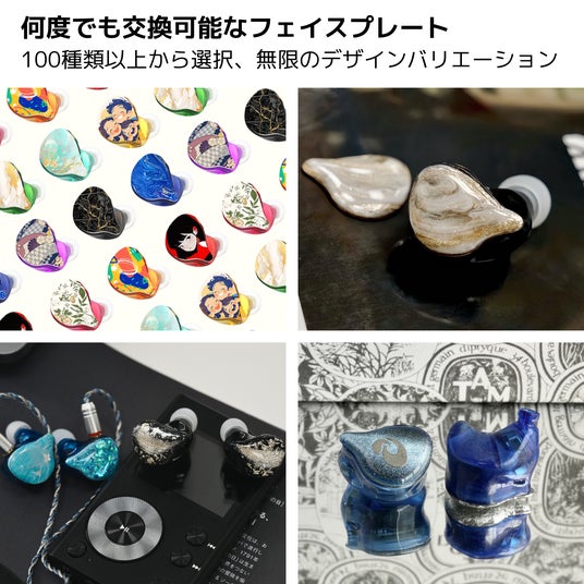 100種類以上のフェイスプレート(着せ替えカバー)が用意されており、ユーザーの個性や気分に合わせてイヤホンの表情を変えることができます。