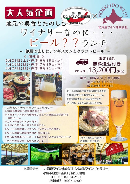 6月・7月・8月開催『地元の食とたのしむ ワイナリーランチ~絶景で楽しむジンギスカンと当社醸造クラフトビール』