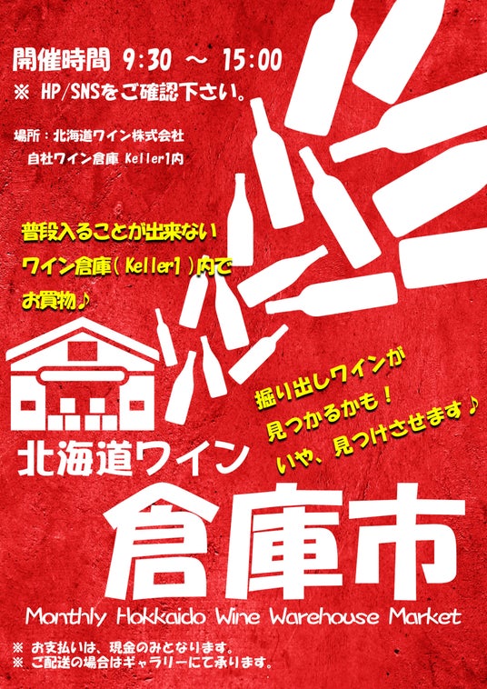 ワイン好きよ集まれ!まとめてトクトク『倉庫市』(入場無料・見学も大歓迎)