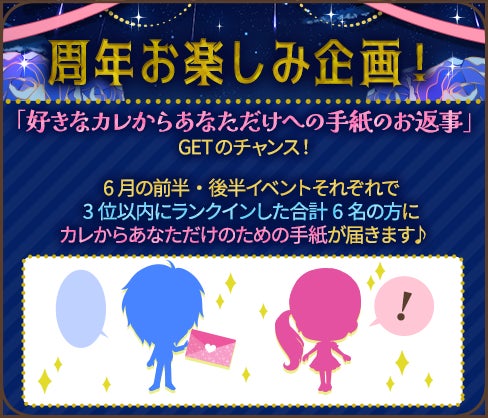 支えてくださったファンの皆様へ感謝を込めて、「ダンナ様に惚れ直し宣言~星の数だけあなたに”好き”を~」をテーマに、特別イラストを制作したほか、アプリ内で楽しめる様々な企画をご用意しました。