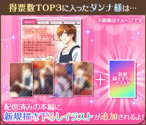 今回のグランプリイベントでの投票数の上位3位までに入賞したダンナ様には配信済みの本編に新規描き下ろしイラストを追加いたします。