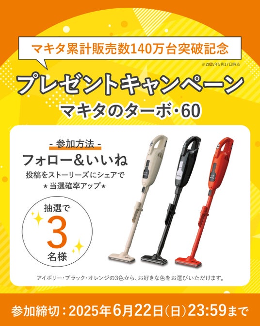 【2025年6月開催】通販生活の『マキタのターボ』シリーズ累計販売数140万台突破記念!『マキタのターボ・60』プレゼントキャンペーンを開催します!