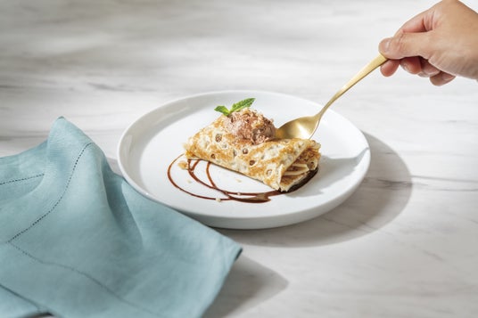 サクサクのフィアンティーヌとなめらかなチョコレートムースをクレープ生地で包みました。