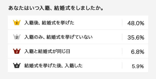 「入籍と結婚式が同じ日」は6.8%、入籍後に結婚式を挙げるという新常識が定着か