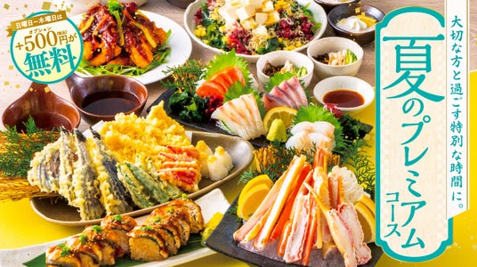 「はなの舞」「さかなや道場」等を全国展開するチムニー株式会社(東京都墨田区)は、全国のチムニーグループ253店舗にて、夏のプレミアムコース3種のご予約受付を開始いたします。夏のプレミアムコースをご予約いただいたお客様には記念日などのシチュエーションに合わせた「オリジナルメッセージ入りの横断幕」または「ラベルに寄せ書きなどが自由にできるオリジナル芋焼酎ボトル」のどちらかを特典としてお付けいたします。