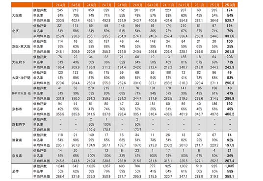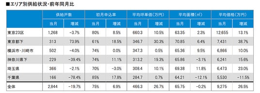 集計対象エリアは首都圏及び関西で、それぞれのエリア別相場情報、需給動向、着工件数等を集計しました。