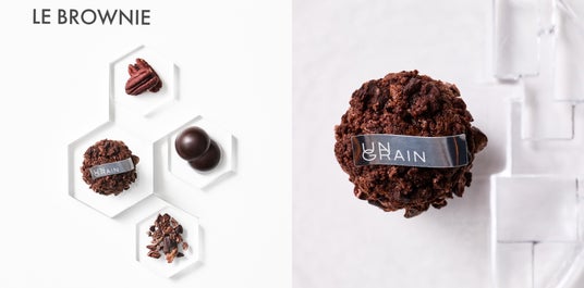 フランス語で「上品さ、可憐さ」という意味を持つ、ひとつまみサイズのお菓子のこと。一般的にフレンチでコース料理の締めくくりとして食後の飲み物とともに提供される小菓子のことを指しますがUN GRAINでは食後に限らず、家族や友人など大切な人たちと過ごすひとときにおもてなしの心を表してくれる、小さくシックなお菓子を総称して呼んでいます。