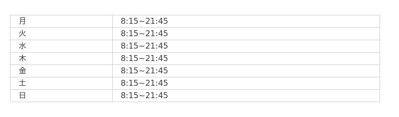 ※オープン時の営業時間となり、変更となっている可能性がございます。