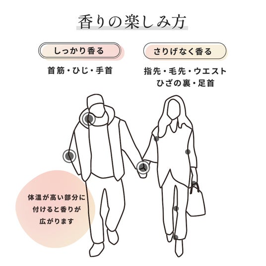 気分や用途に合わせて、付ける場所を変えて香りの変化をお楽しみください。