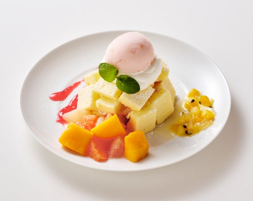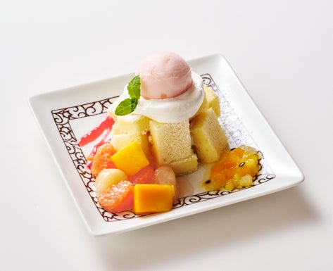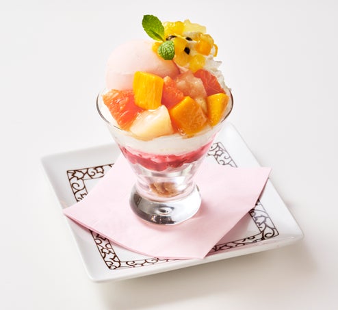 甘くとろける桃やマンゴーをふんだんに盛りつけ、酸味のあるルビーグレープフルーツが味わいのアクセントに。