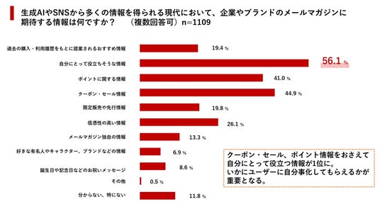 生成AIやSNSから多くの情報を得られる現代において、企業やブランドのメールマガジンに期待する情報は何ですか?