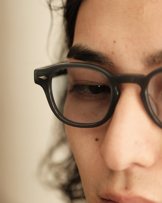 フレームはインラインに無い、藍みを帯びた墨色を採用し、日本の伝統色である"Aisumi Cha(藍墨茶)"と名付けました。透明感がありつつミルキーな風合いに。