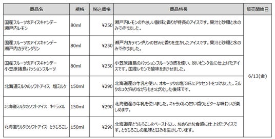 また、北海道の素材にこだわった「北海道ミルクのソフトアイス」3種を6月13日(金)から無印良品の冷凍食品取扱い店舗で順次発売します。