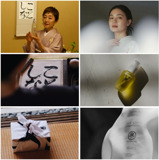 今回は、書家・加山幹子さんがKOTOSHINAのスキンケアを実際に体感し、インスピレーションから描き下ろした風呂敷作品を特別パッケージとして採用。 肌に触れる穏やかな時間と呼応するように、のびやかな筆致と余白が静けさをまとい、手に取る瞬間、心がほどける佇まいに仕上がりました。