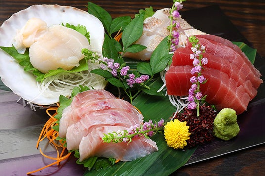 刺身盛り合わせ刺身盛り合わせ - 海の幸の宝石箱 新鮮な海の幸を堪能する「刺身盛り合わせ」。当店では、季節ごとに最も美味しい魚介を厳選しております。まぐろ、サーモン、かんぱちなど、色とりどりの魚たちが織り成す美しい盛り合わせは、まさに目にも舌にも楽しい逸品です。 各魚介の繊細な食感と豊かな味わいを、特製の醤油や山葵と共にお楽しみください。日本酒や冷酒との相性も抜群で、食事の一瞬一瞬を特別なものに変えてくれることでしょう。