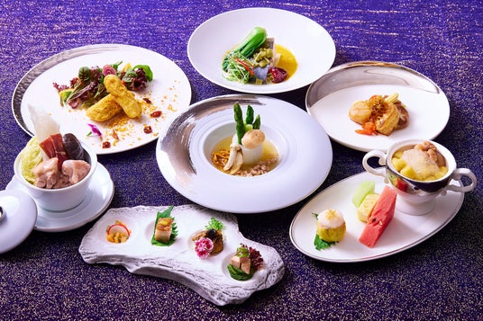「凱華樓」は、伝統的な広東料理に台湾産の旬の食材を融合させた、繊細かつ芸術的な料理が魅力のレストラン。本プランでお楽しみいただける「磐龍宮殿御膳コース」は、古来の宮廷料理を現代の感性でアレンジした、贅沢なフルコースです。