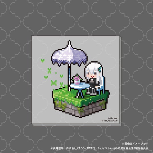 「エキドナ 強欲の魔女の茶会リキュール」をご購入いただいた方には、購入特典として、エキドナをドット絵で描いたイラストがデザインされた【アクリルスタンドコースター】を一緒にお届けします。コースター用のスタンドが付いているので、コースターとしての機能はもちろん、スタンドに立てることでディスプレイとしてイラストを楽しむこともできます。