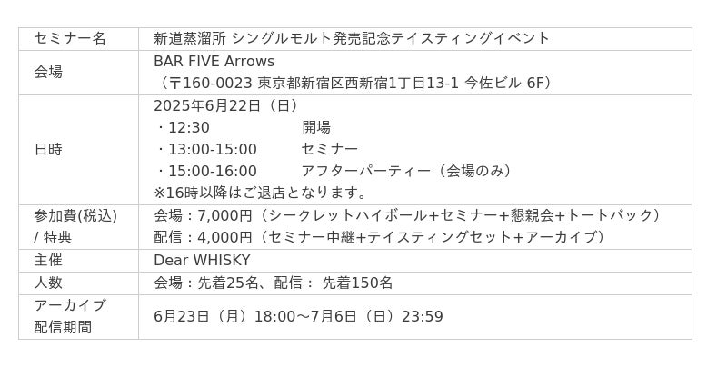 2025年6月22日(日)開催「新道蒸溜所 シングルモルト発売記念テイスティングイベント」