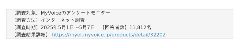 マイボイスコム株式会社(東京都千代田区、代表取締役社長:高井和久)は、5回目となる『しょうゆ』に関するインターネット調査を2025年5月1日~7日に実施しました。