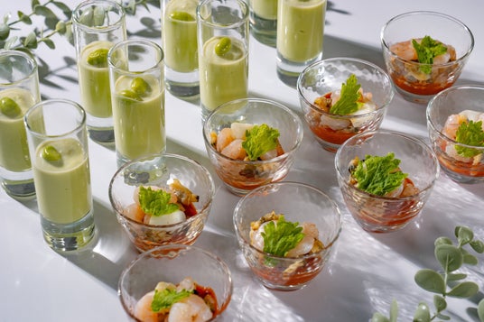 シーフードとトマトのベリーヌ/枝豆の冷製スープ