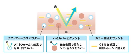 ◇ソフトフォーカスパウダー・ハイカバーピグメント・カラー補正ピグメントを配合。
