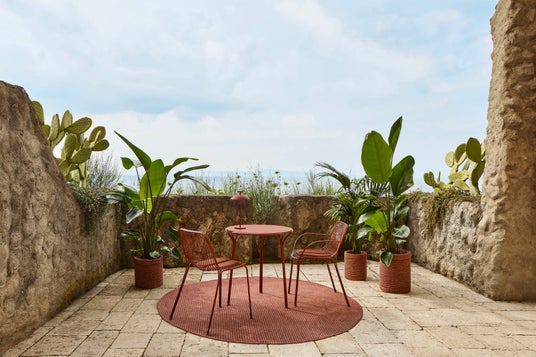「クレオ|Kleo」は屋外での使用ににも適した素材のラグシリーズ。2m丸形、2x2mの正方形、2.4x2mの長方形の3種のサイズ展開です。耐歩圧性に優れ、屋内での使用はもちろん、テラスやデッキ、プールサイドなど屋内外のあらゆる空間にご利用いただけます。裏張りは無く通気性と耐水性に優れ、簡単に水洗いができます。水切れが良いので湿気の多い環境にも適しています。