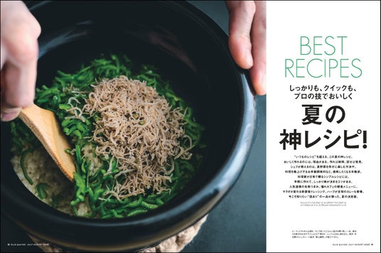 有名店の人気シェフが伝授するのは、夏野菜を存分に味わう本格派のレシピや、料理を格上げする手作り調味料など、挑戦したくなるアイデア満載のひと皿。一方、料理家が日常的に繰り返し作る、手軽でおいしいメニューにも注目。その手軽さの理由やおいしさのコツも紹介します。夏の食卓を彩る、“今こそ知りたい”テクニックが詰まった大特集です。