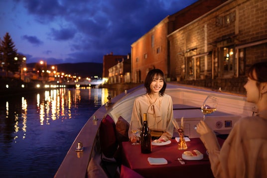 小樽を楽しみ尽くす「街ナカ」ホテル「OMO5小樽(おも) by 星野リゾート」は、2025年9月6日から11月16日までの土・日曜日、祝日限定で、秋の夕暮れに染まる街を眺めながら、ワインとお寿司のマリアージュを味わう「小樽運河ワインクルージング」を開催します。本プログラム専用にテーブルやクッションを設えた船で、レトロな街並みを眺めながら優雅なクルージングを楽しむことができます。さらに、今年は「オサワイナリー」のワインを2種提供。「鮨処まえだ」のおつまみセットとのマリアージュをより一層楽しむことができます。